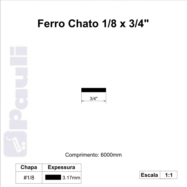 O Chato 1/8 x 3/4 possui superfícies lisas, sem cantos vivos. Este produto é extremamente versátil, sendo empregado principalmente em grades e portões, esquadrias, máquinas, implementos agrícolas e rodoviários, e na indústria mecânica em geral.